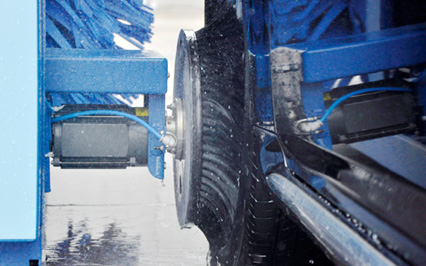 進(jìn)口意大利塑玻絲輪刷,根據(jù)光電開(kāi)關(guān)感應(yīng)判斷車身位置,輪刷啟動(dòng)至輪轂位置,開(kāi)始清洗,正反旋轉(zhuǎn)刷洗輪轂,電腦洗車機(jī)全程電腦全自動(dòng)控制輪刷伸縮。